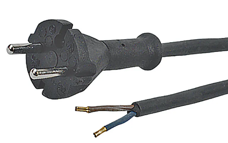 Musta kaapelisetti 5 m ilman maadoitusta. Luokka 2. Suora 2EUN-pistotulppa (”avaimenreikä”).
