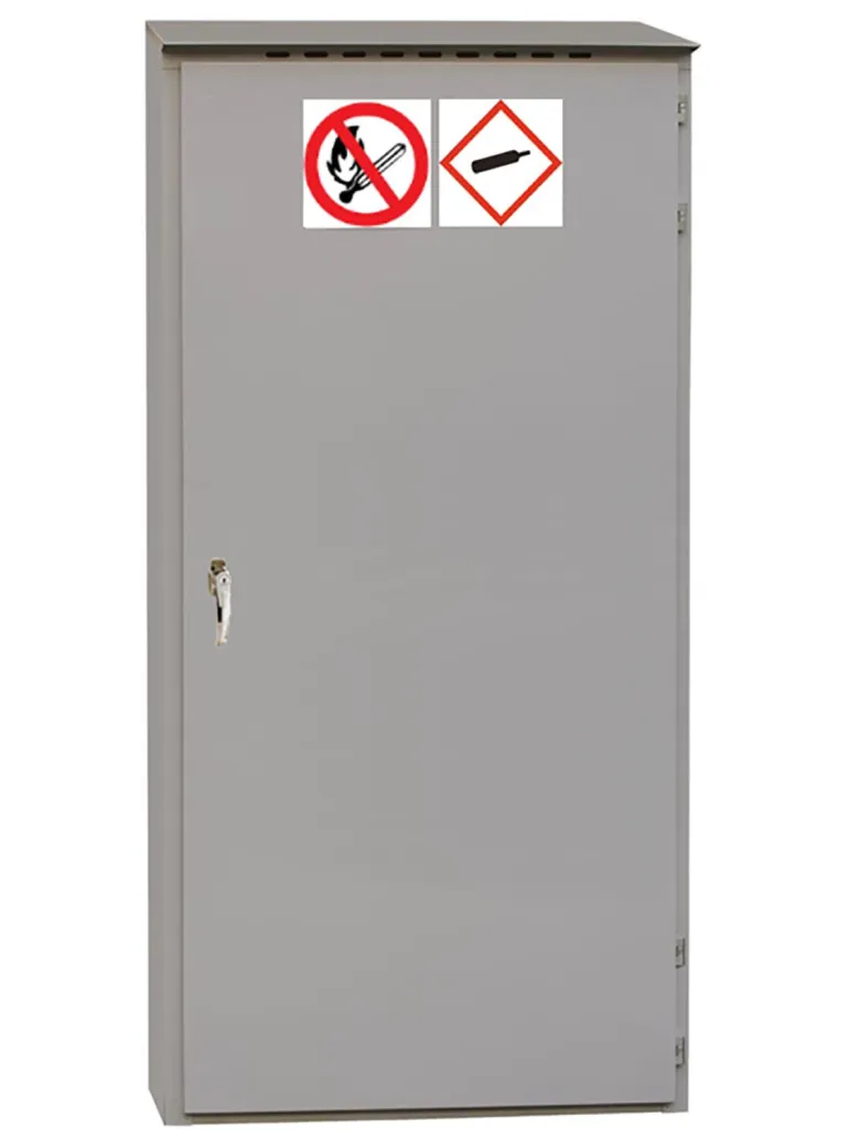 Täyssinkitty kaappi kaasun/nestekaasun ulkovarastointiin. Espanjolettilukitus – sylinterilukko ja kolme avainta.
