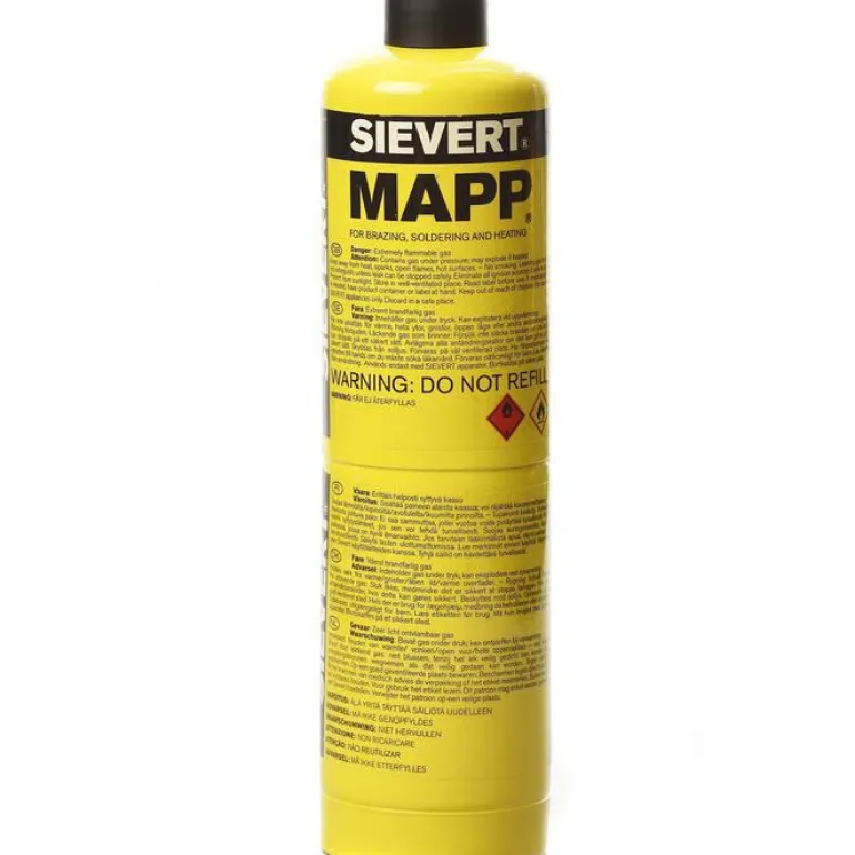 Sievert MAPP-kaasu on kaasupullo, jossa on propyleenikaasua juotto- ja lämmityssovelluksiin. Mukana on EU (7/16″) -liitin, joka on mukautettu kannettaville puhalluslampuille, kuten Sievert Powerjet. Suunniteltu kestämään talvisia ilmasto-olosuhteita ja tuottamaan maksimaalista lämpöä myös erittäin kylmissä lämpötiloissa. Lisäksi kaasu on ympäristöystävällistä eikä myrkyllistä. Turvallisempi, nopeampi, halvempi ja helpompi käyttää kuin asetyleeni.