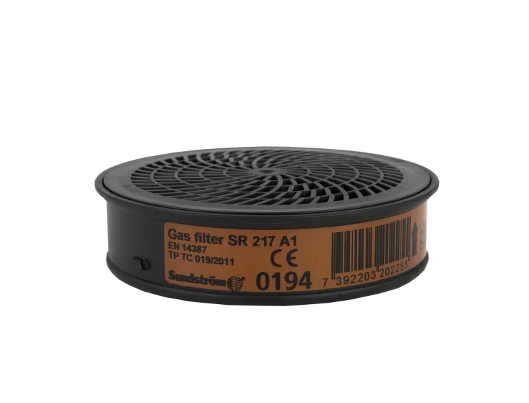 Kaasuilta ja höyryiltä suojaava suodatin, jossa on optimoitu imeytyminen. 1 luokan SR 217 -kaasusuodatin on suunniteltu käytettäväksi Sundströmin puoli- ja kokonaamareiden kanssa. Suodattimen ovat tyyppiä A ja suojaavat orgaanisilta kaasuilta ja höyryiltä, kuten liuottimilta, joiden kiehumispiste > +65 °C.
