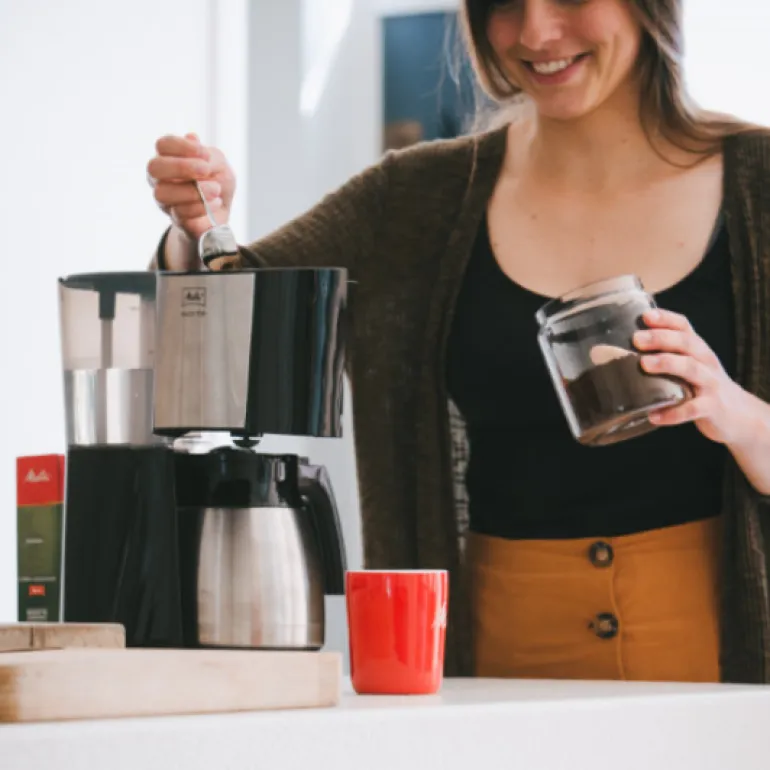 Melitta Enjoy Top 2.0 on 1080 W kahvinkeitin, jossa on moderni ruostumaton teräsrakenne ja hyvin suunnitellut ominaisuudet, kuten rikkoutumaton ruostumattomasta teräksestä valmistettu kannu ja patentoitu AromaSelector-ominaisuus.