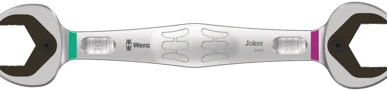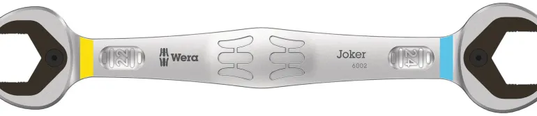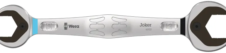 Wera Joker 6002 on metrinen kaksoiskiintoavain (koko 20 x 22 mm) kuusikantaisiin pulttien päihin tai muttereihin. Kiintoavaimen metallilevyssä on pitotoiminto, joka pienentää ruuvien ja muttereiden häviämisriskiä. Vain 30°:n palautuskulma poistaa aikaa vievän tarpeen kääntää avainta ruuvattaessa. Erityinen taottu geometria takaa suuren vääntömomentin voimansiirron ja suuren taivutusjäykkyyden.