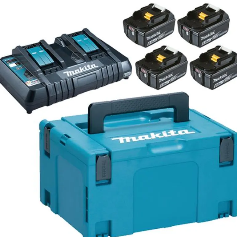 Makita Powerpack 198091-4 on kaksoislatauslaite. Tästä paketista kätevästi virtaa 18V LXT akkukoneisiin. Yhdisteltävä Makpac kantolaukku sisältää neljä 6.0Ah akun varaustilan näytöllä varustettua Li-ion akkua sekä kaksoislatauslaitteen DC18RD, joka lataa akun täyteen noin 55 minuutissa.