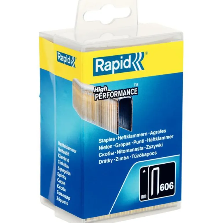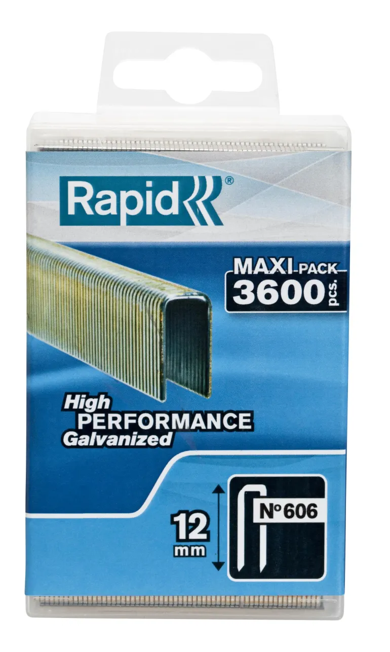 Rapid nro 606, 18 mm – Kapeaselkäiset hakaset kovien materiaalien läpi kiinnittämiseen. Hakaset on valmistettu korkealaatuisesta teräksestä ja galvanisoitu. Niissä on myös tarkkuusleikatut varret, jotka läpäisevät tehokkaasti. Rapid nro 606 toimii kuin kaksoisdyckertnaula ja soveltuu lattioiden, paneelien, listojen ja koolausten kiinnittämiseen. Käsitelty pinta parantaa kiinnityskykyä.