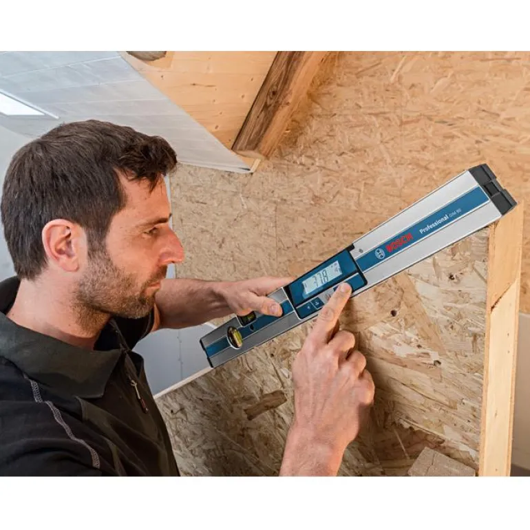 Bosch GIM 60 Professional on digitaalinen kaltevuusmitta, 60 cm. Mittaa kulmat asteina ja kaltevuudet prosentteina tai mm/m. Suuntanuolet ja akustinen merkkiääni 0–90° helppoon suuntaamiseen. Kestävä alumiinirunko.