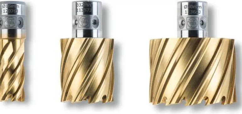 TiN-pinnoitettu keernaporanterä, jolla on erinomainen käyttöikä ja paremmat liukuominaisuudet. SI-mitta, poraussyvyys 25 mm.