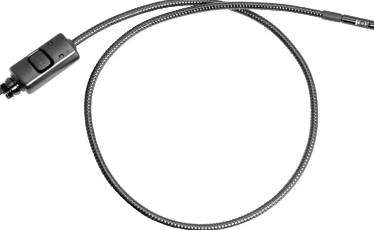Kiinteä kamerapää, jossa on kaksi kameraa, toinen edessä ja toinen sivulla (90°). Voit vaihtaa näiden kameroiden välillä. Kameran pää ja kaapeli ovat vedenpitäviä IP 67 (mutta liitäntä ja kytkin eivät). 9 mm kamerapää. Soveltuu seuraaville Limit-tarkastuskameroille: 174270108, 190110106 ja 190120105.