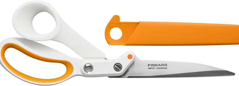 Fiskars Amplify™ -kangassaksien innovatiivisen teknologian, kätevien ominaisuuksien ja ergonomian ansiosta paksujenkin kankaiden ja kangaskerrosten leikkaaminen onnistuu siististi. Ergonomisesti muotoiltu kahva mukailee käden muotoja, ja Softgrip™-yksityiskohdat lisäävät käyttömukavuutta ja hallinnan tuntua.