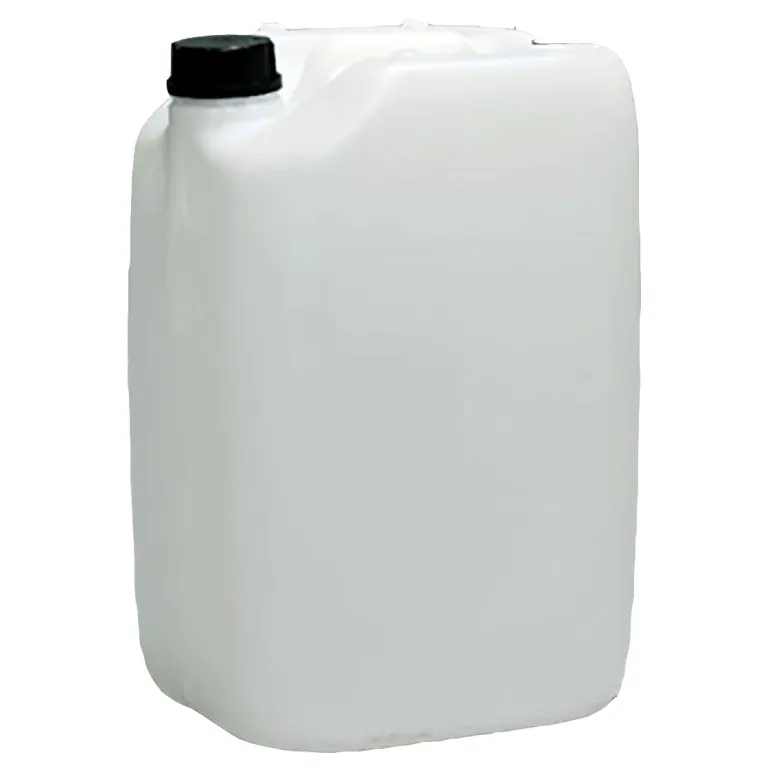 Kanisteri läpinäkyvää/valkoista HD-polyeteeniä. Kestää öljyä, dieseliä, etikkaa. Ei sovellu aggressiivisille/kuumille hapoille.