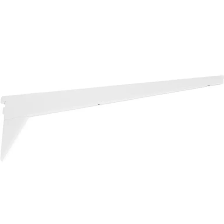 ELFA 415710 on valkoinen kannatin melamiinihyllytasolle, esimerkiksi kirjojen säilytykseen. Kiinnitetään seinäkiskoon. Hyllytaso kiinnitetään hyllytason tapilla, hyllytason kannatinruuvilla tai hyllytason liitoskannattimella. Hyllytason tulisi olla enintään 3 cm syvempi kuin kannattimen. Mitat 13x570x149 mm.
