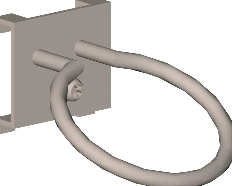 Sähkösinkitty. 30 asteen kulmassa alaspäin. Kiinnitetään leveällä pidikkeellä ja ruuvilla.