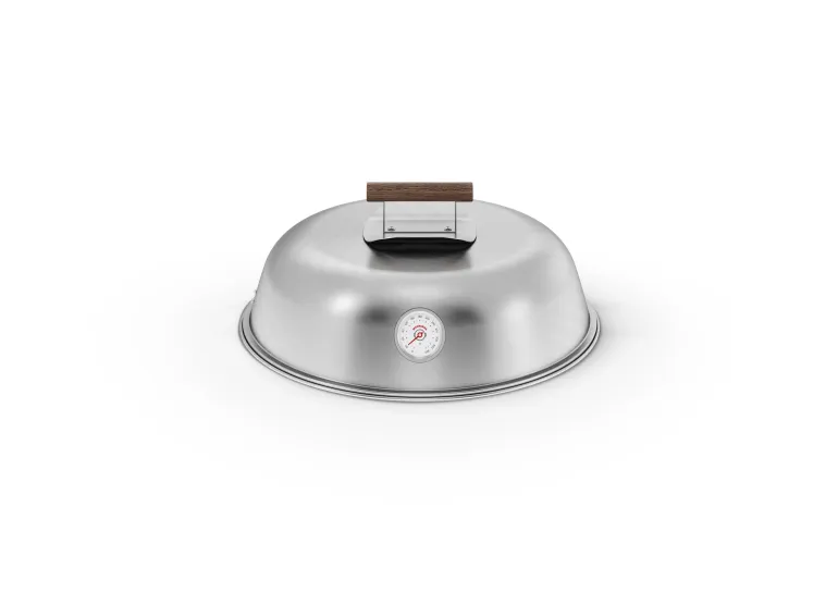 Tyylikäs ja käytännöllinen kansi ruostumatonta terästä, jossa puukahva savusaarnea. Kannessa on lämpömittari, jonka avulla lämpötilaa on helppo seurata. Muurikka-pannulle/pannusetille 58 cm.