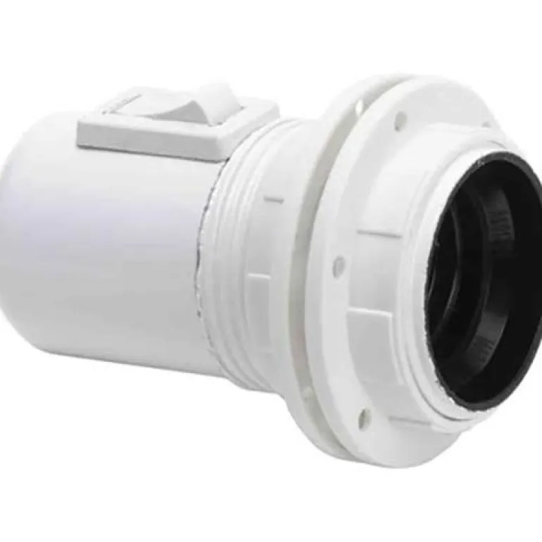 Kierteellinen lampunpidike vipukytkimellä, soveltuu esimerkiksi pöytä- ja kattovalaisimille.