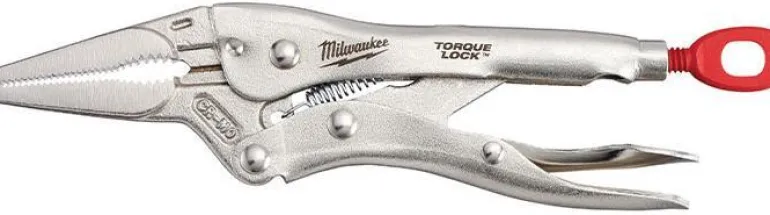 Milwaukee 4932471733 on 230 mm pitkät kärkilukkopihdit, kapasiteetti 76 mm. Pihdit ovat kromatut, ja niissä on karkaistut, aggressiiviset leuat maksimaalista puristusvoimaa varten. Kromattujen työkalujen käyttöikä on pidempi vähäisemmän korroosion ansiosta. Jousi leukojen automaattista avaamista varten.