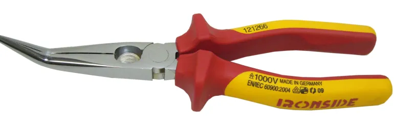 Kromi-vanadiiniterästä, kromattu pää. Yksinkertainen nivel. Kärjestään 45º taivutetut leuat uritetuilla otepinnoilla ja sivuleikkurilla. Ergonomiset kahvat kaksikomponenttimateriaalia. Hyväksytty työskentelyyn jännitteisessä ympäristössä 1000 V saakka. 200 mm.