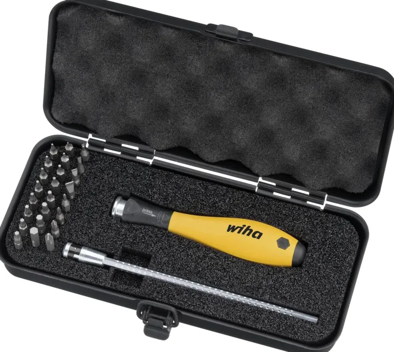 Ruuvauskärkisarja, joka sisältää ruuvitaltan ja kärkisarjan. Varren pituus säädettävissä. SYSTEM 4 SoftFinish®-teleskooppinen ESD-kahva. Sähköstaattinen hajottava, pintavastus 10^6 – 10^9 Ohm. Joustava työskentely vaihtelevasti säädettävän terän pituuden ja ruuvikärjen nopean vaihdon ansiosta. Sopii elektronisten komponenttien pienimmille ruuveille.