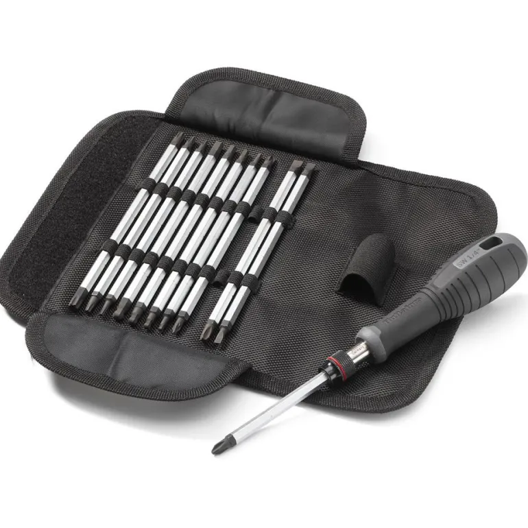 Sarja sisältää pitkä kärjet ja kahvan kätevässä kangaskotelossa. Yhdessä ammattilaisten kanssa kehitetty sarja. Kärkien pituutta voidaan säätää kahvassa.