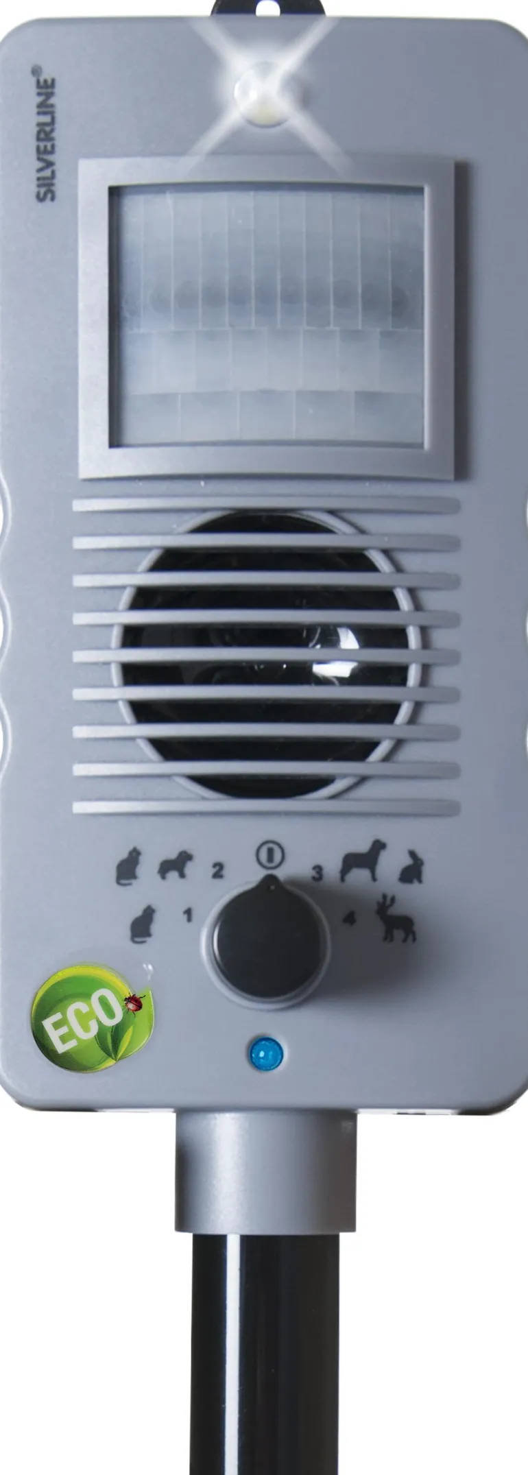 Silverline Katt & Vilt KV300 on karkotin, joka kattaa jopa 300 m²:n alueen. Äänitaajuus on säädettävissä, ja se valitaan karkotettavan eläimen mukaan. ChaseLight yllättää eläimet kirkkaalla strobovalolla. Sisäänrakennettu liiketunnistin valvoo jopa 15 metrin aluetta karkottimen edessä. Toimii 6 kpl 1,5 V LR14-paristolla.