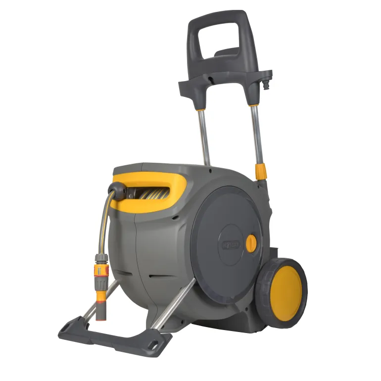 Hozelock -kasteluletkukärry (automaattinen) jarrujärjestelmällä. Vedä helposti ulos letkua kevyellä nykäisyllä: mekanismi lukittuu automaattisesti säännöllisin välein vahingossa tapahtuvan sisäänkelauksen estämiseksi. Jarrumekanismi ja kelausjärjestelmä takaavat tasaisen, hallitun uloskelauksen ilman solmuja tai sotkeutumisia. Suuret leveät pyörät takaavat erinomaisen ohjattavuuden ja liikkuvuuden. Kärryssä on ulostaitettava tuki, joka lisää vakautta kastelun aikana (helppo taittaa takaisin sisään).
