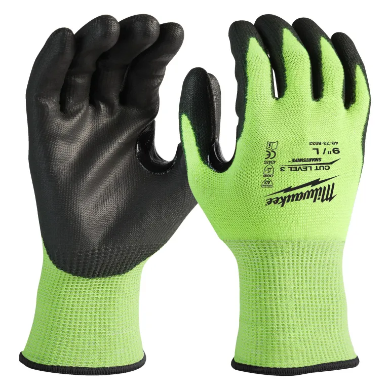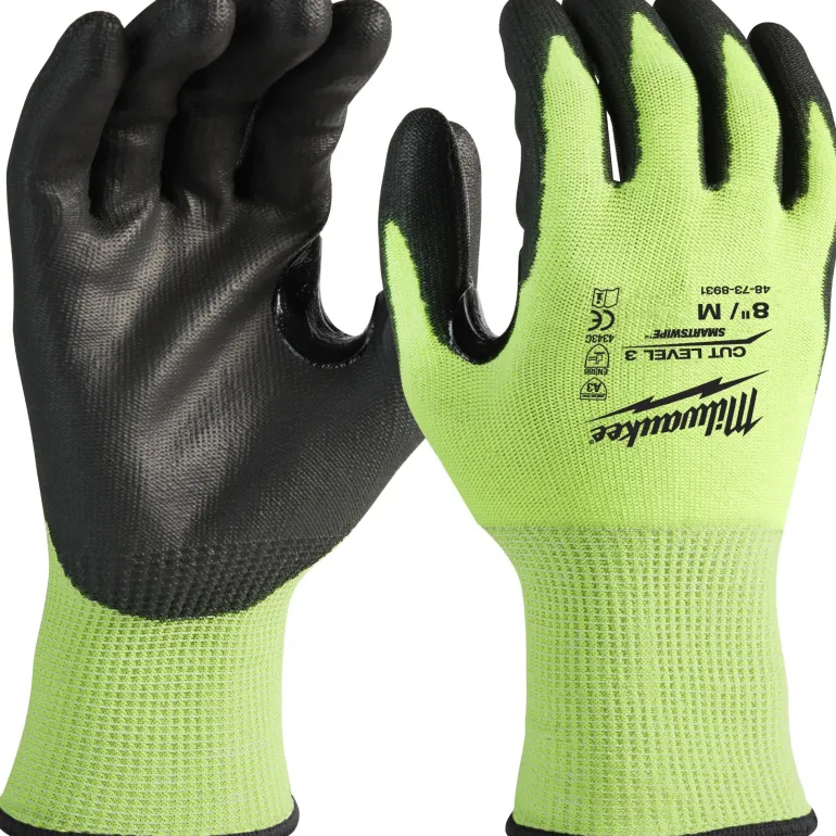 Fluoresenttimateriaali parantaa näkyvyyttä. Cut Level 3 -suojaus kestää paremmin kulutusta ja viiltoja ja se on ihanteellinen johdon kuorimiseen, putken kierteitykseen tai sahaamiseen (vs. Cut Level 1).