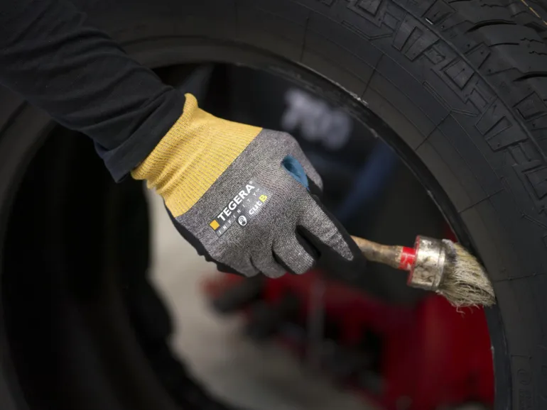 Kuvaus: Anatomisesti muotoiltu, hyväksytty elintarvikekäyttöön, kestää kosketuslämpöä jopa 100°c saakka, viiltosuoja EN 388:2016 tason B mukaan