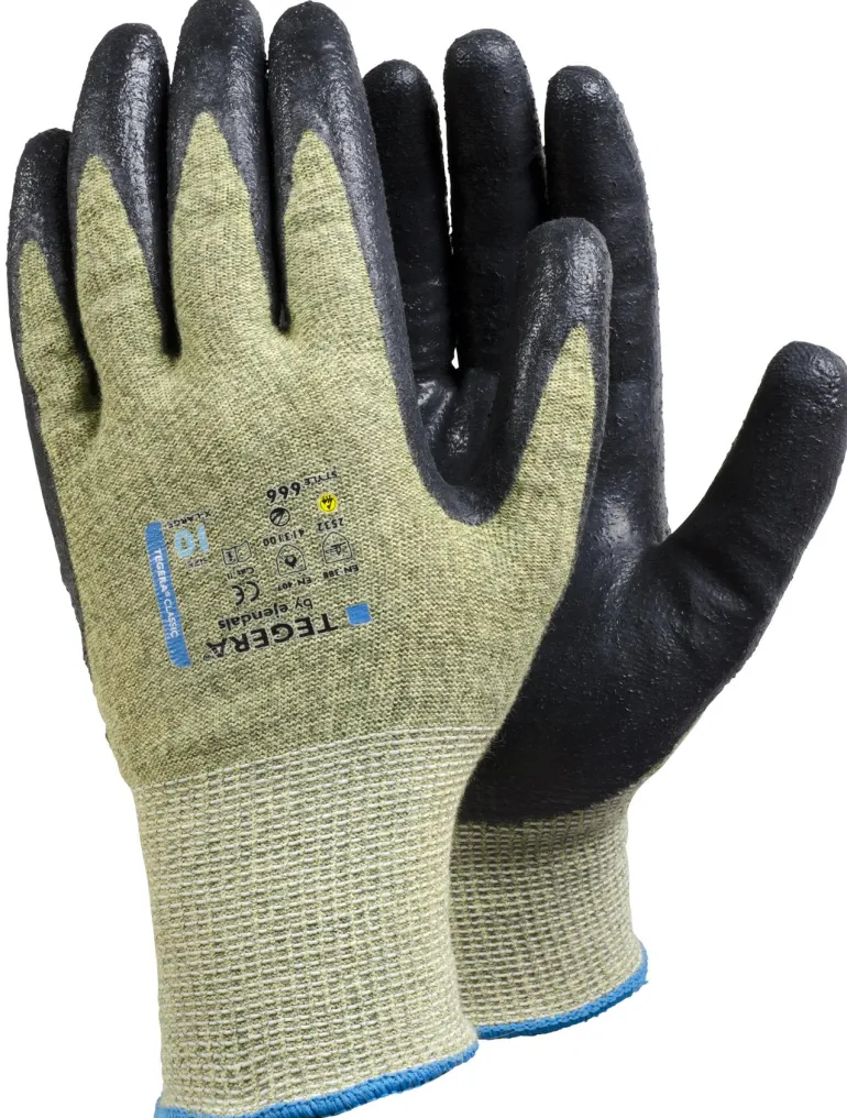 Kuvaus: Vettä ja öljyä hylkivä kämmenosa, kestää kosketuslämpöä jopa 100°c saakka, hengittävä kämmenselkä, viiltosuoja EN 388:2003 tason 5 mukaan, viiltosuoja EN 388:2016 tason C mukaan, viiltosuoja EN 388:2016 tason D mukaan