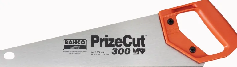Käsisaha, hieno hammastus/suorat hampaat. Kärkikarkaistu. Lyhyt malli.