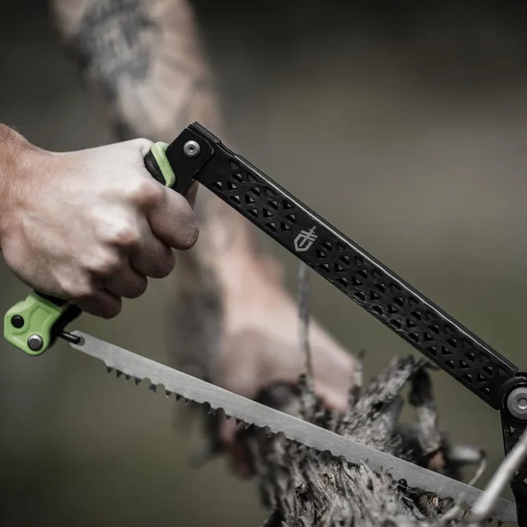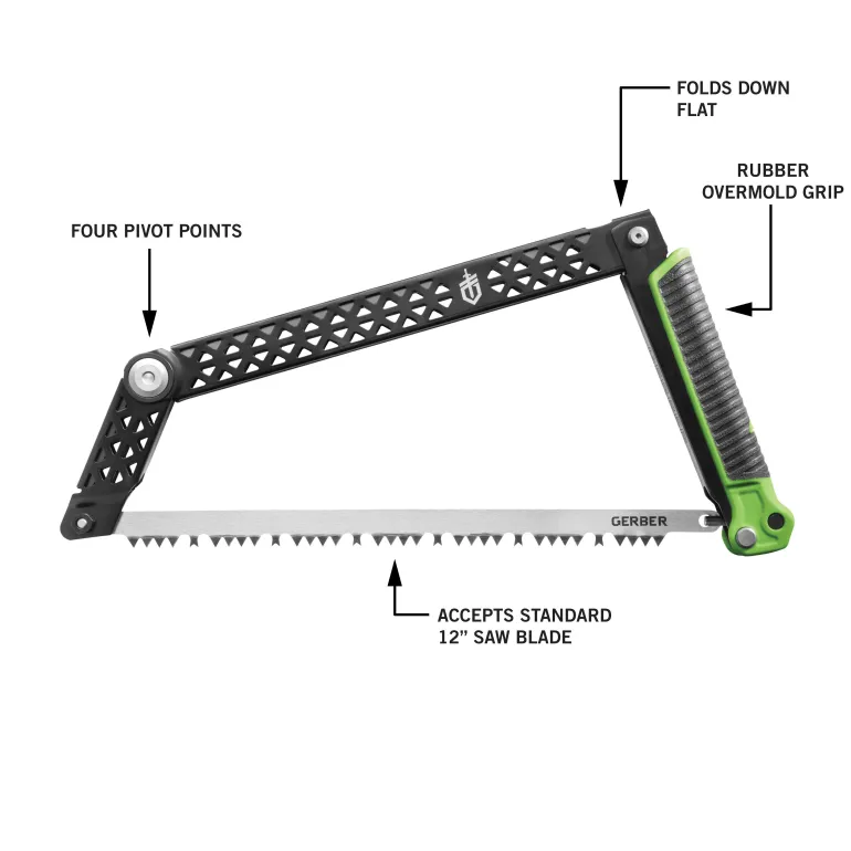 Tämä saha on helppo taittaa kokoon, kun sitä ei käytetä, muuttuu erittäin kompaktiksi ja vie vähän tilaa repussa. Itse saha on hyvin tehokas avatussa tilassa. Terä on vakiomallinen 12″ terä.