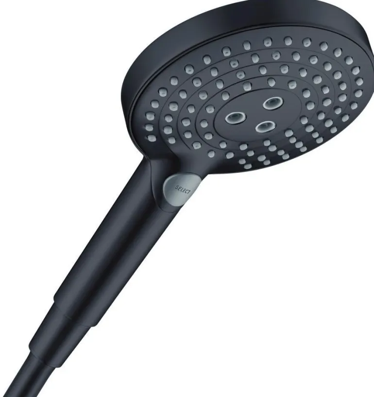 Hansgrohe Raindance Select S120 on mattamusta käsisuihku, jonka suihkupään halkaisija 120 mm. Kolmella suihkutyyppillä, joiden välillä voit kätevästi vaihtaa painamalla Select-painiketta. Käsisuihkussa on myös pestävät likasuodattimet ja se soveltuu läpivirtauslämmittimiin.