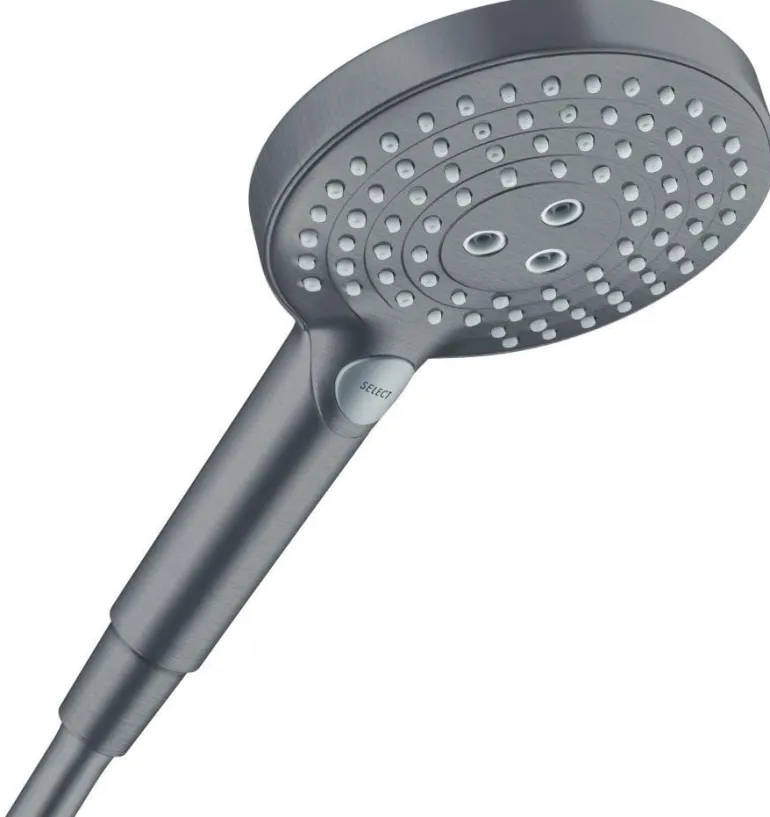 Hansgrohe Raindance Select S120 on käsisuihku (harjattu musta), jonka suihkupään halkaisija 125 mm. Kolmella suihkutyyppillä, joiden välillä voit kätevästi vaihtaa painamalla Select-painiketta. Käsisuihkussa on myös pestävät likasuodattimet ja se soveltuu läpivirtauslämmittimiin.