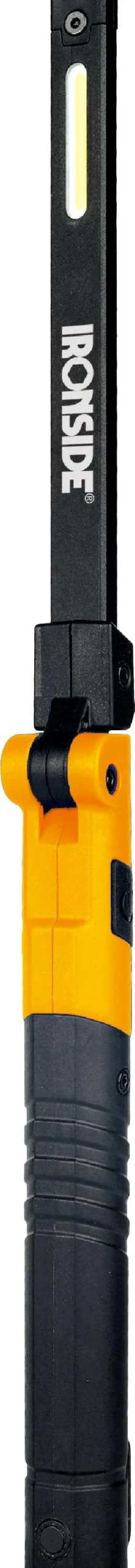 Nivelletty ja ohut ladattava LED-lamppu (miniversio). Säädettävä työvalo kahdella valotilalla: maks. 300 lm. Kahva iskunkestävää ABS-muovia kiinnikkeellä/klipsillä. Pohjalevy vahvalla magneetilla. LED-diodi vilkkuu vihreänä latauksen aikana ja palaa tasaisesti vihreänä, kun se on ladattu täyteen. Alumiininen valaisimen pää, joka on pystysuunnassa säädettävissä 180°. COB-työvalot molemmilla sivuilla ja ylävalo SMD 80 lm/5 h.