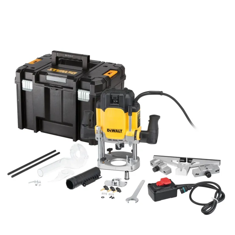 DEWALT 230 V:n jyrsin on suunniteltu suoriutumaan vaativimmistakin töistä. Kompakti koko ja anatomisesti suunnitellut kahvat helpottavat käyttöä pitkien työskentelyjaksojen aikana. Itsevoitelevat fosforipronssiholkit tarjoavat tarkan, pitkäkestoisen ja tasaisen jyrsintätehon. Tarkka syvyyssäätö mahdollistaa toistettavat ja tarkat leikkaukset. Parempi pölynpoisto AirLock-yhteensopivan suuttimen kautta. Nollajännitekytkin estää tahattoman käynnistyksen, jos koneen virta katkeaa. Kytkin on aktivoitava uudelleenkäynnistystä varten. Tämä parantaa turvallisuutta. Konekytkin on suunniteltu käytettäväksi ylösalaisin jyrsintäpöydässä.