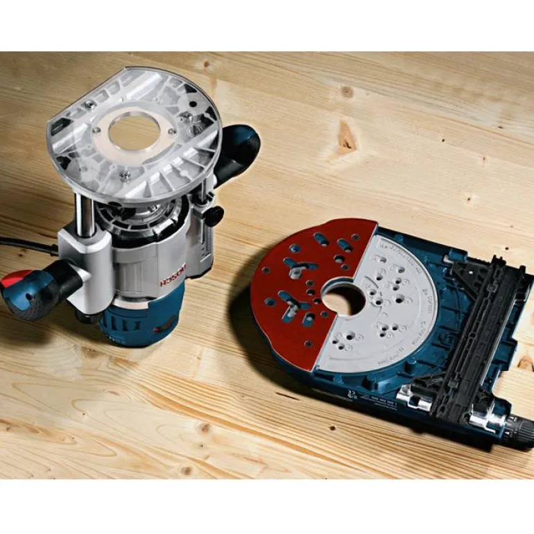 Käsiyläjyrsimen kiskoadapteri Boschin ohjainkiskoille FSN 800, FSN 1100, FSN 1600, FSN RA 32 800 ja FSN RA 32 1600. Jopa 25 mm:n suuntaissäätö. Jalkalevyn erilaiset reiät sopivat Bosch GOF/GMF -käsiyläjyrsimille sekä muille markkinoilla myydyille merkeille (esim. Festool, Mafell, DEWALT ja Makita).