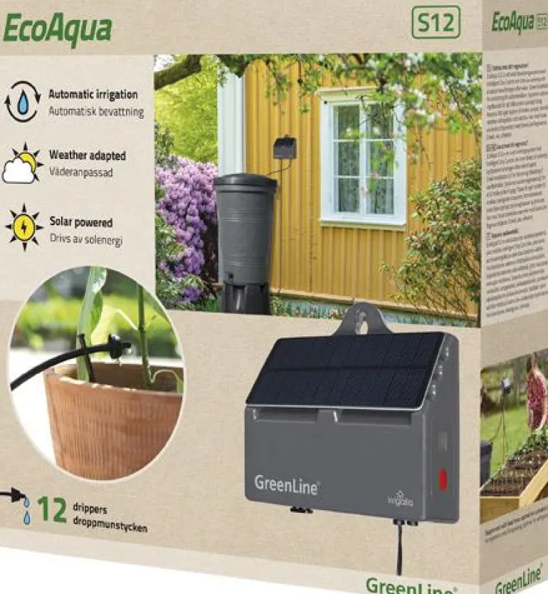 Greenline Drip -kastelujärjestelmä EcoAqua S12 on ainutlaatuinen aurinkoenergialla toimiva kastelujärjestelmä, joka mukauttaa kastelun sääolosuhteiden mukaan. EcoAqua S12 on helppo asentaa vesisäiliöön ja järjestelmä voidaan mukauttaa juuri sinun tarpeisiisi.