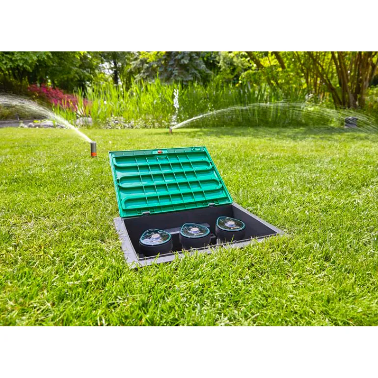Järjestelmä säästää vettä ja suojaa kasveja. Jos kastelujärjestelmä on jaettu eri alueisiin maanalaisten putkien kautta, kutakin johtoa voidaan hoitaa erikseen Bluetooth-yhteyden ansiosta, jolloin virtalähdettä eikä kaapeleita tarvita. Kastelu voidaan aloittaa ja lopettaa manuaalisesti milloin tahansa ohjauselementin painikkeella. Haluttu kesto voidaan asettaa sovelluksessa. Vaihtoehtoisesti venttiilikotelo voidaan kytkeä erikseen saatavaan kosteusanturiin kastelua varten tarpeen mukaan.