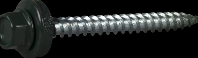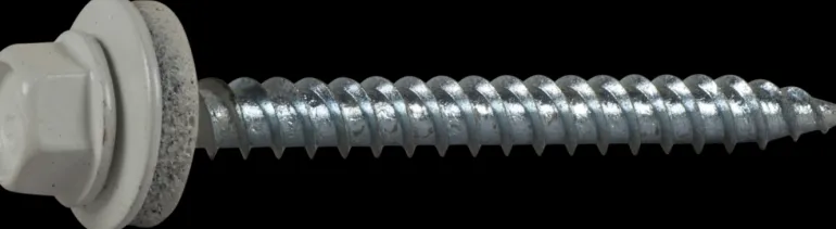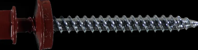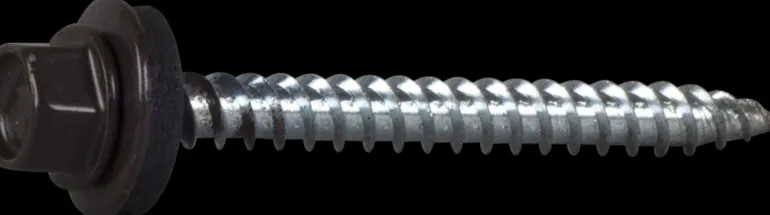 Teräväkärkinen itseporautuva ja itsekierteittävä kateruuvi, jossa on galvanoitu teräsaluslaatta EPDM-tiivisteellä ja polyesterijauhemaalaus. Tarkoitettu profiloidun pellin asennukseen puualustaan.