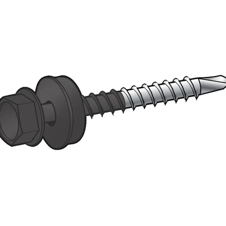 100 kpl mustaksi maalattuja kateruuveja porakärjellä, tarkoitettu profiloidun pellin asennukseen puualustaan sekä pellin asennukseen peltiin. Avainkoko: 8mm.