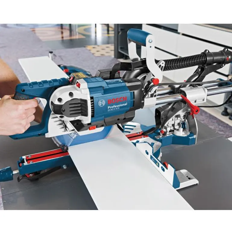 1600W:n katkaisu- ja jiirisaha, jonka leikkuuleveys on 312mm ja pystysuora kapasiteetti 70mm. Säädettävä nopeus, molemminpuolinen kaltevuussäätö ja kaksi pölynpoistoputkea. Lasermerkki osoittaa sahauskohdan selvästi.