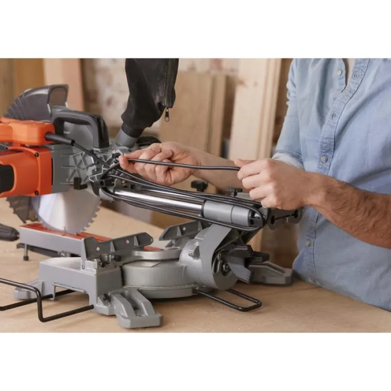 Black & Decker BES700-QS on 1600W:n katkaisu- ja jiirisaha, jonka leikkuukapasiteetti on 45° ja jiirauskapasiteetti 48°. Ihanteellinen tarkkoihin, suoriin ja siisteihin leikkauksiin jopa 305 mm paksuudella. 100 % tarkkuus käyttämällä innovatiivista varjolinjajärjestelmää. Mukana tulee integroitu pölynkeräyspussi pitämään työtilaa puhtaana. Laikan halkaisija on 216 mm, joten leikkauskapasiteetti on enintään 55 mm x 305 mm. Asennusta ei tarvita, vaan saha on valmis käytettäväksi heti, kun se puretaan pakkauksesta. Saha soveltuu puisten runkojen, palkkien, lattialautojen, vuorausten ja listojen leikkaamiseen ja se soveltuu käytettäväksi kodin korjauksissa.