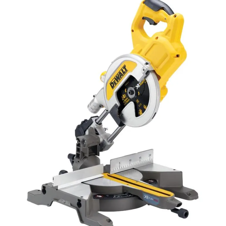 DEWALT DCS777 on 54 V:n akkukäyttöinen katkaisu- ja jiirisaha, jossa on kallistussäädöt 50° molempiin suuntiin. Varustettu 216mm:n terällä 80mm:n sahaussyvyyteen asti. Nopeus 6300 kierr./min. XPS-sahauslinjajärjestelmä valaisee työkappaleen kunnolla.
