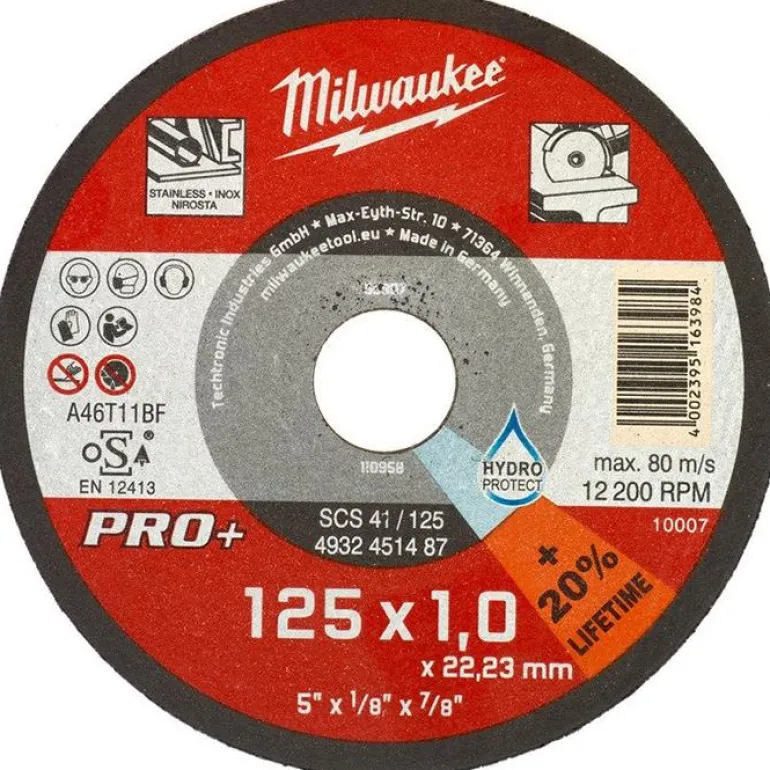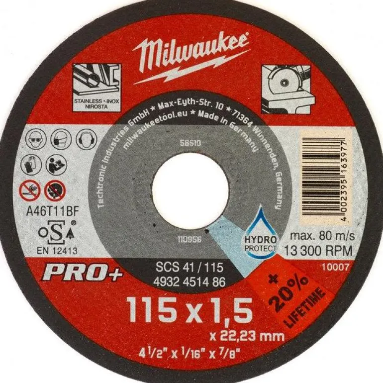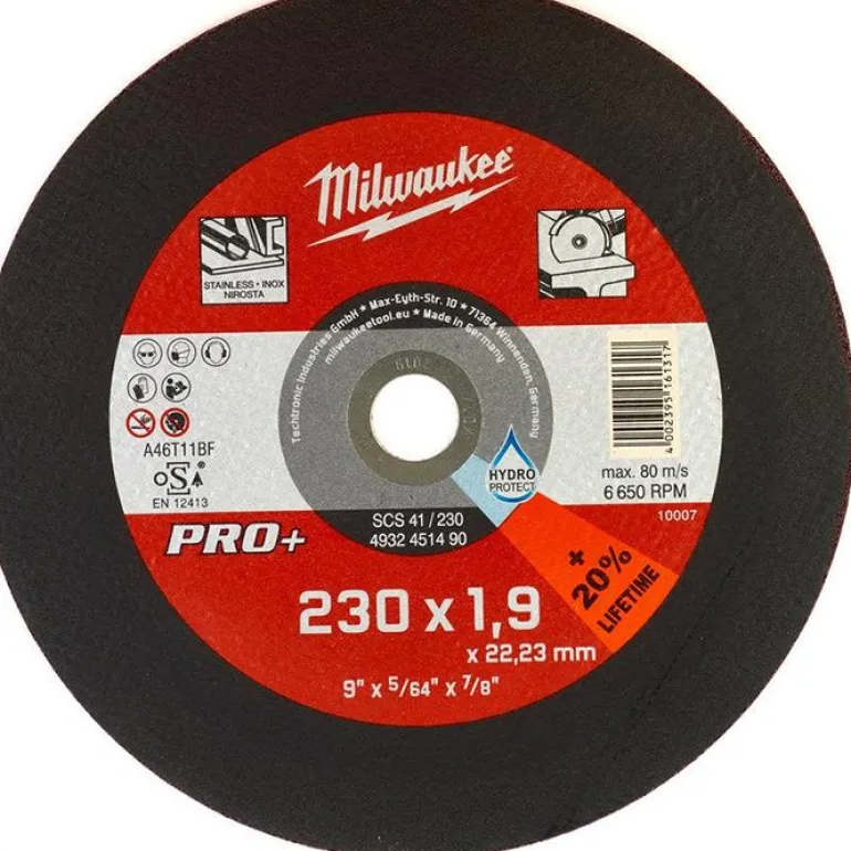 SCS 41 PRO+ -sarjan katkaisulaikka, halkaisija 230 mm, reiän halkaisija 22,2 mm, paksuus 1,9 mm, kaikille metallityypeille. Sopii parhaiten ruostumattomalle ja haponkestävälle teräkselle, karkaistulle valuraudalle ja työkaluteräkselle.