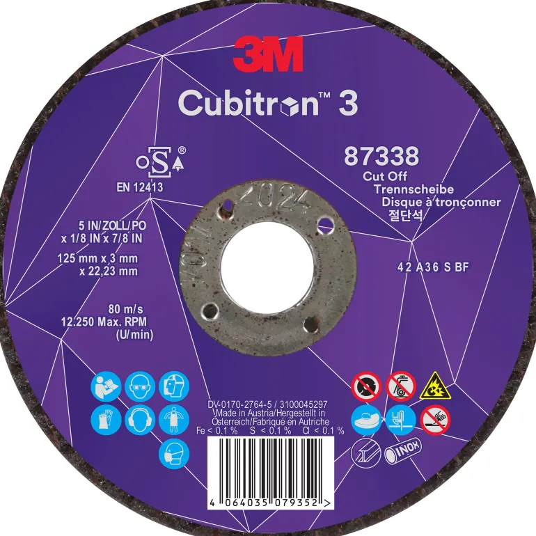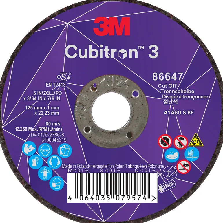3M™ Cubitron™ 3 katkaisulaikalla teet kohtisuorat leikkaukset käyttämällä laikan ulkoreunaa. Laikka on ihanteellinen valinta metallin leikkaamiseen esim. ajoneuvo- ja laivateollisuudessa. Laikalla katkaiset ruostumattomat teräsputket, pakoputket, puristimet, ruostuneet kiinnikkeet ja paljon muuta. Lisäksi 3M™ Cubitron™ 3 katkaisulaikan tehon takaa 3M:n uudelleen suunniteltu ja tarkkuusmuotoiltu keraaminen hiomajyvä, jonka patentoitujen molekyyliliitosratkaisujen ansiosta terävä ja kulmikas rakenne murtuu yhä uudelleen muodostaen teräviä kärkiä. Suorat terävät kärjet tekevät hiomatuotteesta nopeasti leikkaavan, viileänä pysyvän ja perinteisiä hiomatuotteita paljon pidempään kestävämmän. 3M™ Cubitron™ Performance hiomatuotteet on tehty ammattilaisille, joiden on hyödynnettävä työvälineensä maksimaalisesti. Koe uuden sukupolven hiomateho valitsemalla 3M™ Cubitron™ 3 katkaisulaikka.