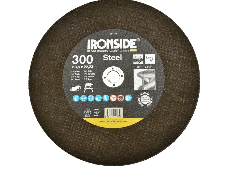 Katkaisulaikka kiinteään katkaisukoneeseen ja moottorikoneeseen metallin katkaisua varten. Ohut laikka tehokkaaseen leikkaamiseen.