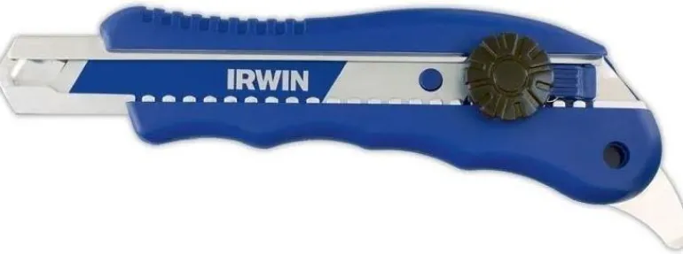 Irwin-katkoteräveitsi 18 mm leveällä terällä ja monipuolisuutta lisäävällä sisäänrakennetulla metallipäädyllä. Vankka alumiininen valukahva ja teräksinen teränpidin pitkäkestoiseen työskentelyyn, ja kevyt ja kestävä kahva estää käden väsymistä.