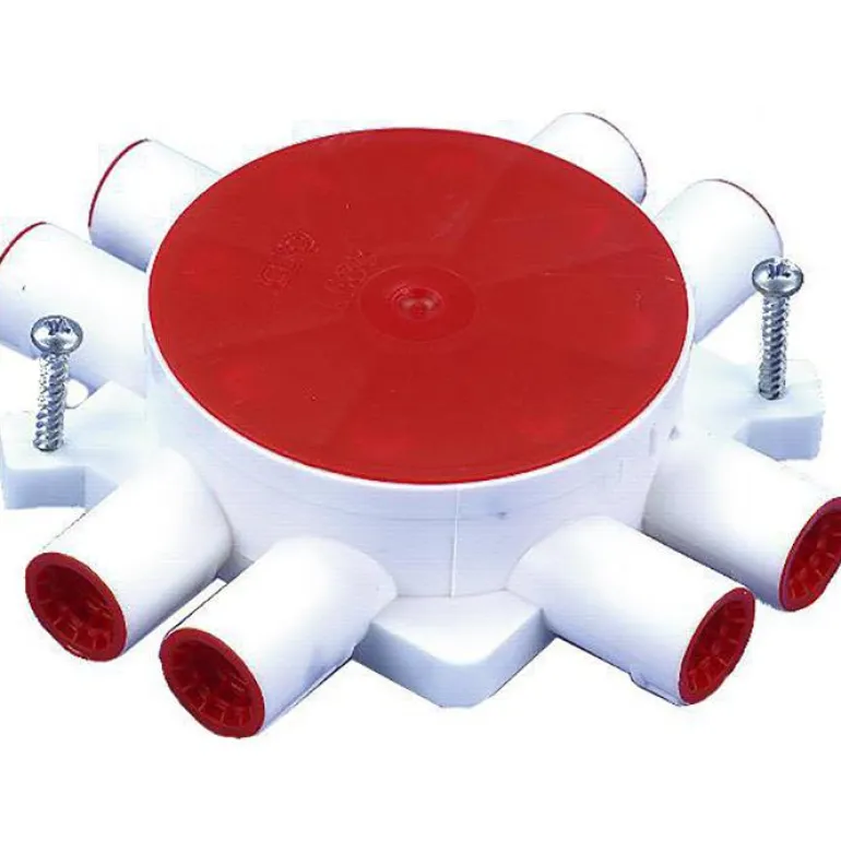 Kattorasia, jossa on 8 nysää, jotka sopivat Ø 16 mm putkille, mutta joita voidaan käyttää myös Ø 20 mm:n putkille putkimuhvin kanssa. Mukana salpajousi, tiivistystulpat, rappauskansi ja kiinnitysruuvit.