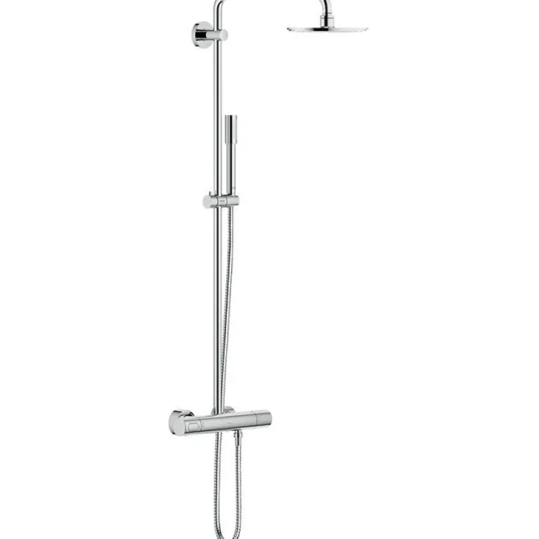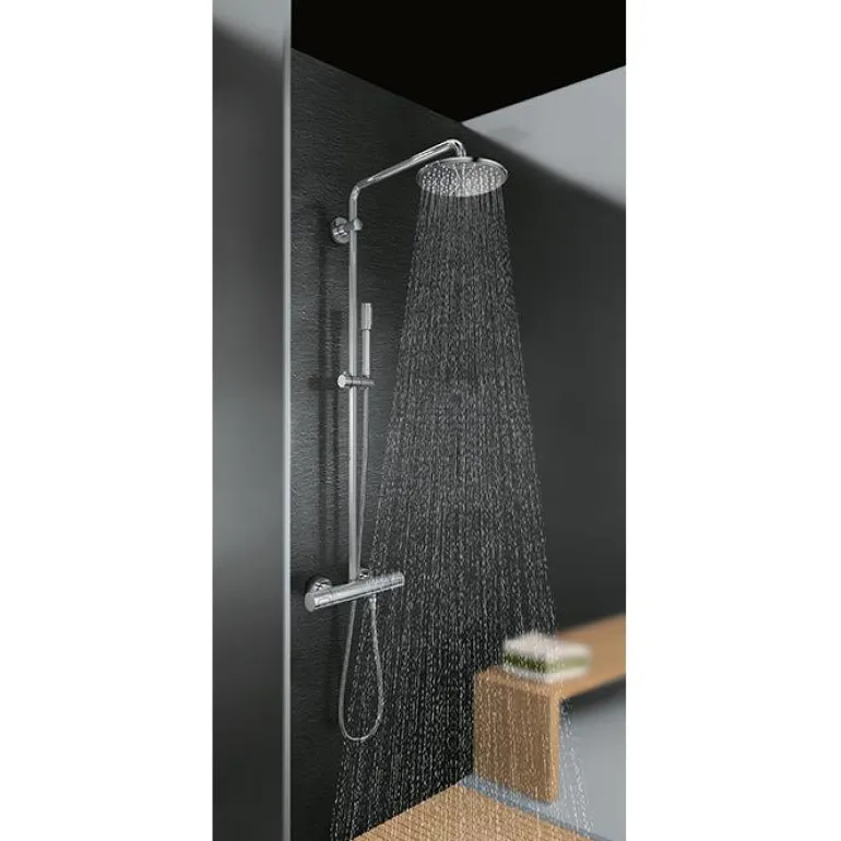 Grohe Rainshower System 210 on kattosuihkusarja termostaatilla ja seinäkiinnityksellä. Pakkaukseen kuuluu sekä käsi- että kattosuihku sekä 150 mm termostaattisekoittaja. SafeStop Plus rajoittavat lämpötilan joko 38 tai 43 asteeseen. Sarjassa on kromattu Grohe StarLight-pinta sekä puhdistusta helpottava SpeedClean.