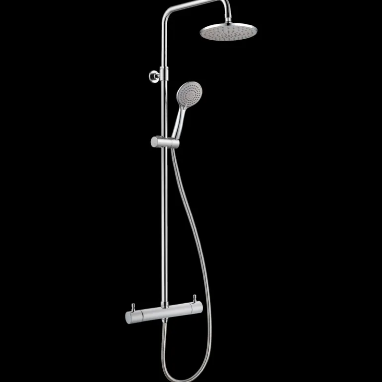 Kattosuihkusarja, joka koostuu 160 k/k termostaattisekoittajasta, pyöreästä kattosuihkusta ja hierovasta käsisuihkusta. Varustettu sekoittimessa olevalla sisäänrakennetulla vaihtokytkimellä käsisuihkun ja kattosuihkun vaihtamiseksi.
