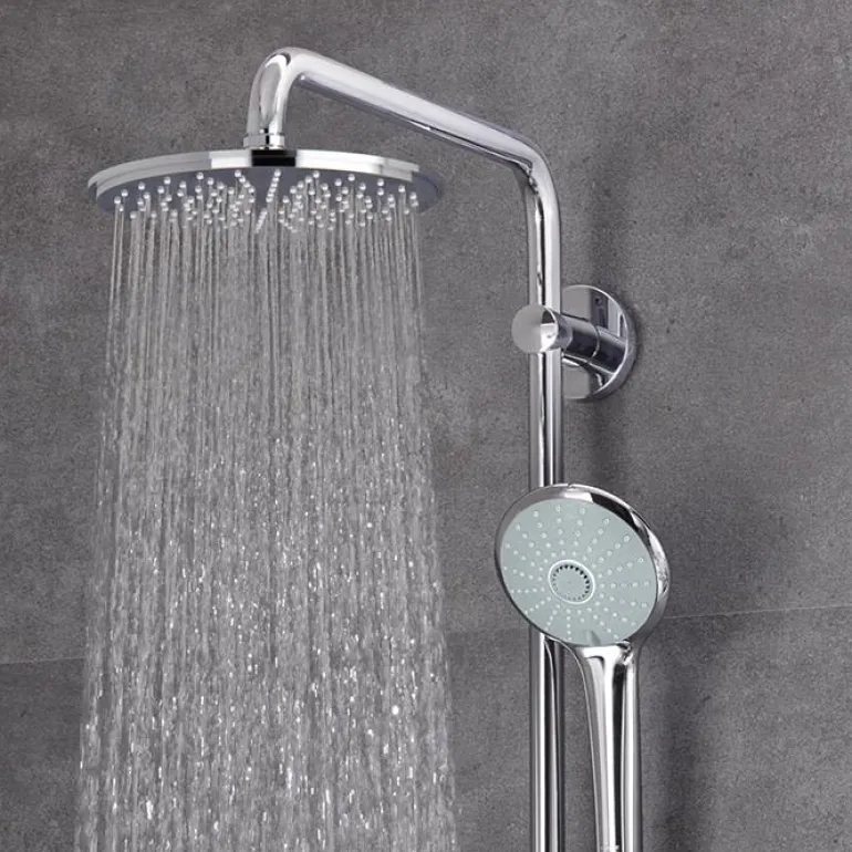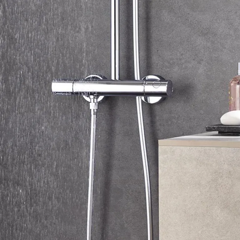 Kattosuihkusarja termostaatilla ja seinäkiinnityksellä. Pakkaukseen kuuluu sekä käsi- että yläsuihku sekä 150 mm termostaattisekoittaja ja suihkutanko. Sekoittajassa on ergonominen Grohe MetalGrip -kahva ja SafeStop sekä SafeStop Plus, jotka rajoittavat lämpötilan 38 tai 43 asteeseen.