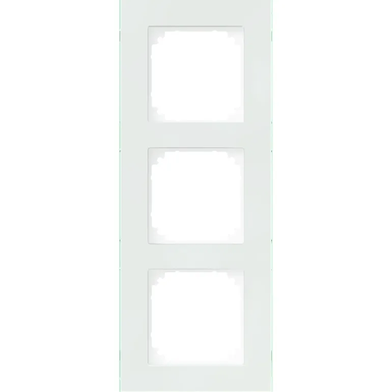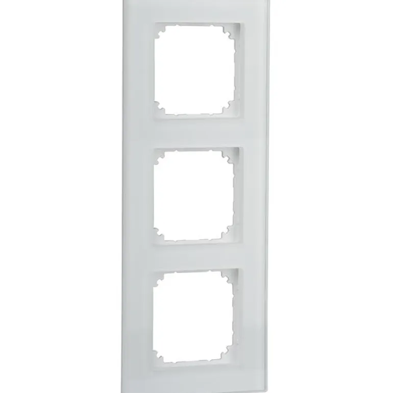 Valkoinen lasikehys seinäpistorasioihin. Voidaan asentaa pysty- tai vaakasuoraan.