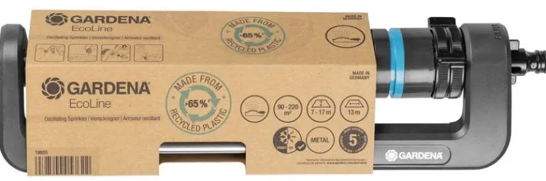 GARDENA EcoLine -keinusadetin on vastuullisesti valmistettu ratkaisu puutarhan kastelutehtäviin. Se on tarkoitettu kooltaan 90 – 220 m²:n suorakulmaisten alueiden tarkkaan kasteluun ilman lätäköitä. Sadettaja on valmistettu muovista, josta yli 65 prosenttia on peräisin kotitalouksista kierrätetystä materiaalista.